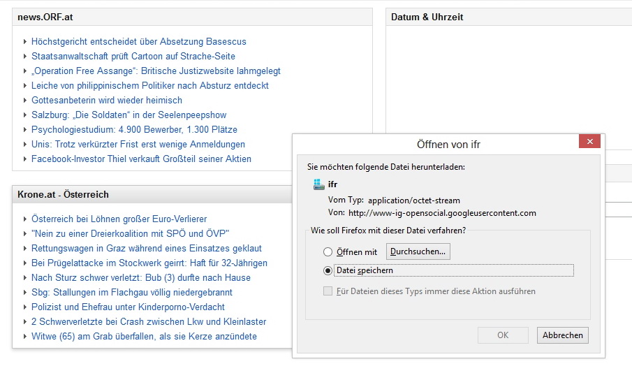 Jetzt öffnet sich aber jedesmal beim Start ein kleines Fenster mit der Bezeichnung "ifr" (siehe Anhang) und möchte etwas installieren.